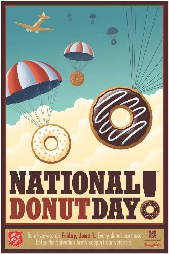 “This annual celebration was started as a fundraiser by The Salvation Army in Chicago during the Great Depression as a way to honor our military veterans and commemorate the work of Salvation Army volunteers who used the tasty confection to comfort American soldiers in France and Germany during World War I.”